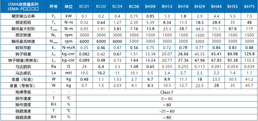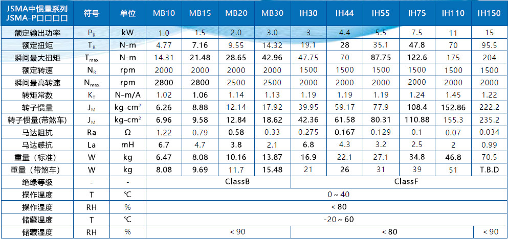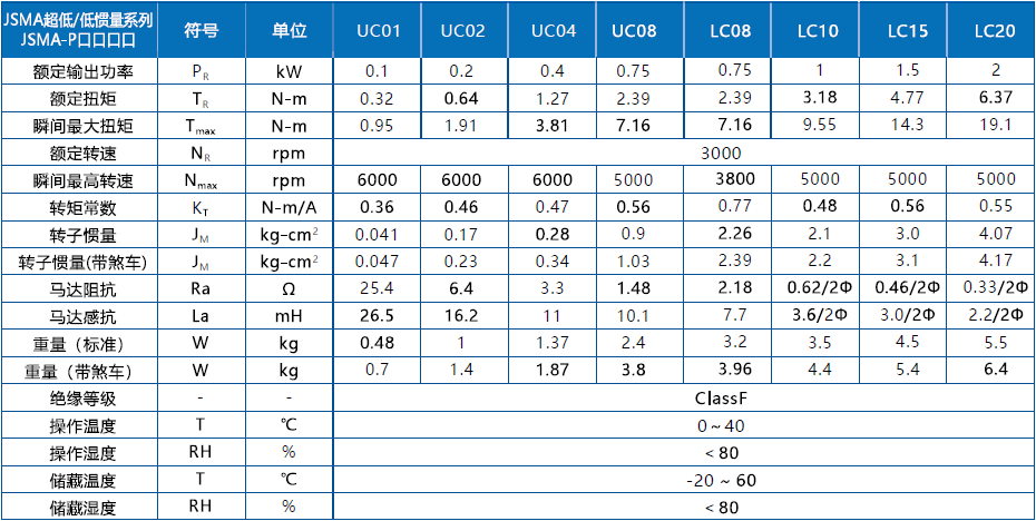 東元JSMA-PUC08B7K-Y1伺服電機的規格參數