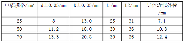 把相應規格的電纜去皮,長度大于接線螺栓深度1~3mm;接線螺栓內孔清理干凈,把電纜導體插入其中,用液壓鉗及相應壓頭進行壓接,一次壓接在端部5~7mm處,壓接時電纜導體插入接線螺栓內孔底部,二次壓接在根部,壓接后的部位形成清晰的正六方體。