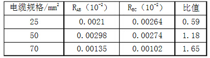 根據標準需檢測A、B和B、C間電阻(分別為如、R彤),端頭壓接部位的電阻與所連接同長度導線電阻的比值為:(2RAB一RBC)/RBC,壓接電阻檢測結果如圖所示。