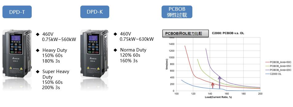 為實現臺達集團對節能減排的理念,臺達工業自動化推出高效工程型變頻器產品DPD系列,具備全中文菜單、內置PLC功能、高階PID調節等功能,同時搭配可程序設計液晶面板以及豐富的總線接口,適合應用在化工、礦業、冶金、石油、市政、建筑樓宇、HVAC、交通等行業。 高階向量型DPD-T系列產品具有高效率、高性能、長壽命、低維護等特色,為恒轉矩負載、重載或一般負載等重大型工程設備,提供可靠與安全的動力來源。風機水泵專用型DPD-K系列,可實現無感向量控制,起多段V/F曲線設定和軟啟功能,能夠讓變轉矩負載輸出達到最佳的節能效果。